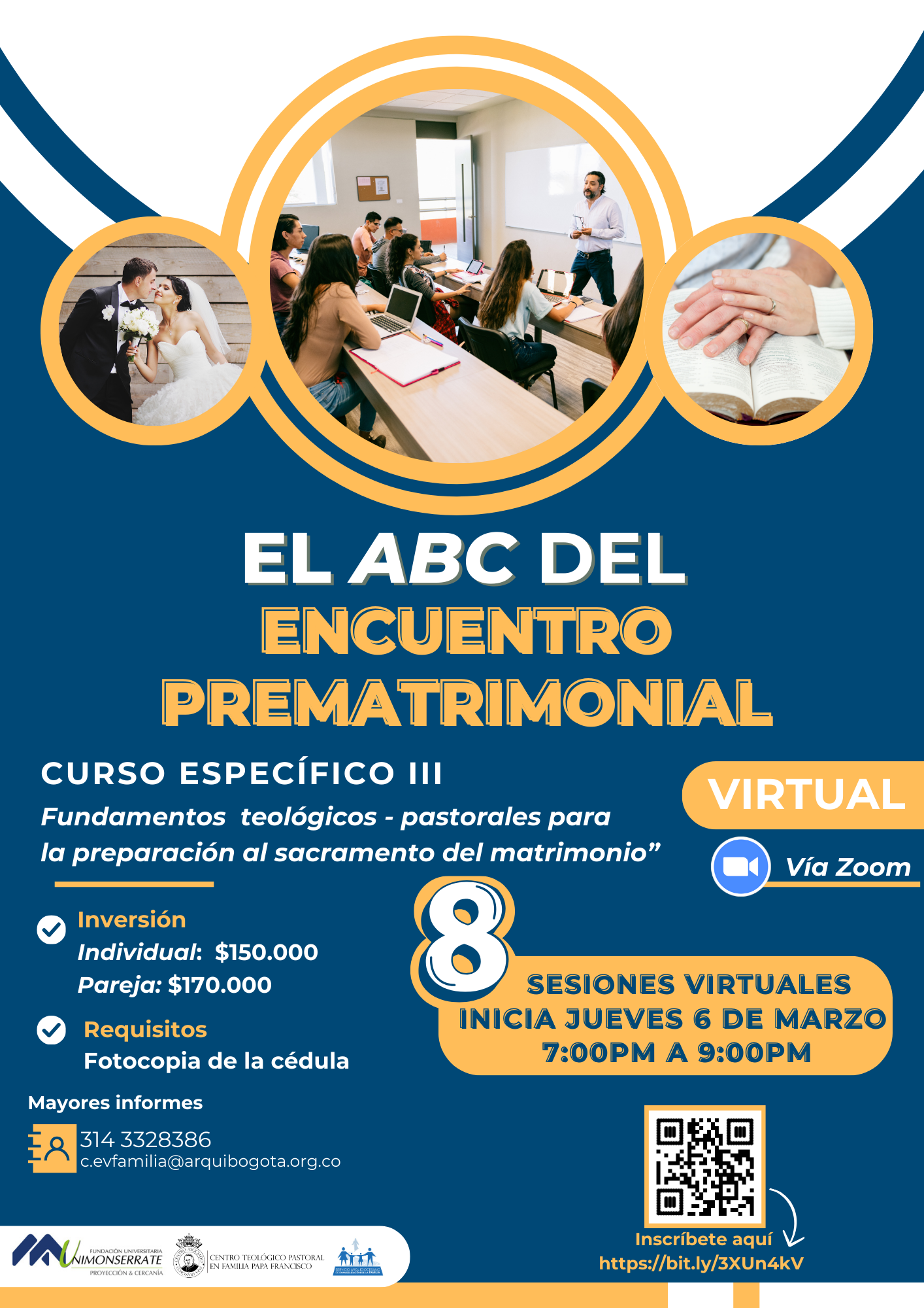El Servicio Arquidiocesano de Evangelización de la Familia en convenio con la Fundación Universitaria Monserrate invitan a los animadores de evangelización, especialmente, aquellos que acompañan la preparación al sacramento del matrimonio en nuestro territorio, a participar del