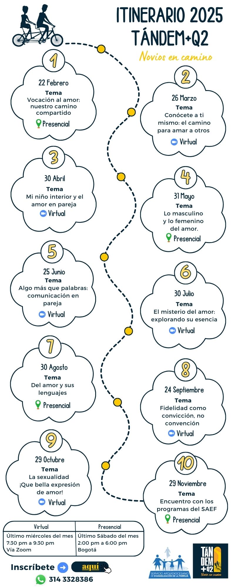 Con este programa acogemos la invitación del Papa Francisco a "reconocer que acompañar el camino de amor de los novios es un bien" para la misma comunidad cristiana. El equipo está conformado por parejas de matrimonios quienes, con un acompañamiento cercano y testimonial, emplean diversos recursos pastorales para caminar con los novios a fin de que su amor vaya madurando.