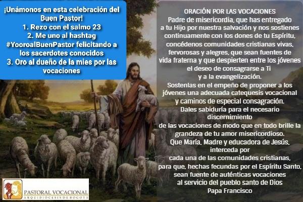 3. Para este Domingo estaremos compartiendo por redes virtuales, unos testimonios vocacionales por parte de seminaristas y sacerdotes de nuestra Arquidiócesis, con el hashtag #soybuenpastor Esto con la intención que nos unamos a través de videos breves, narrando nuestra alegría y testimonio sacerdotal. Para quienes quieran compartir un video personal lo pueden hacer, teniendo en cuenta que no dure más de un minuto y grabado en orientación vertical desde los celulares con buen fondo y calidad de audio.